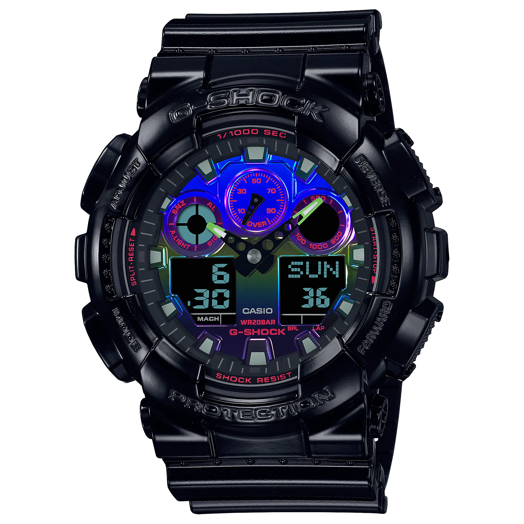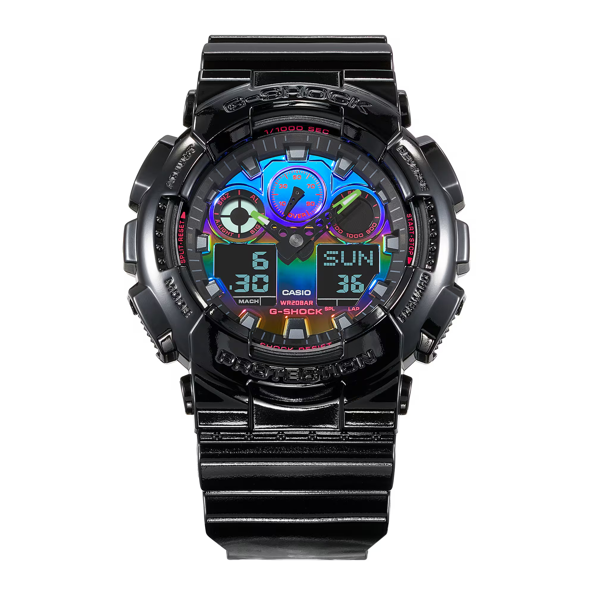 G-SHOCK รุ่น GA-100RGB-1A สีดำ หน้าปัดสีรุ้ง นาฬิกาอนาล็อก-ดิจิตอล